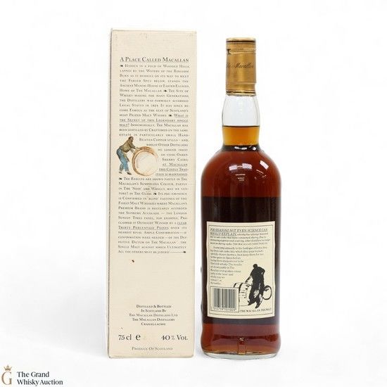 This is an older style of bottling of the famous Macallan 10-year-old malt whisky. This malt was matured in sherry wood.