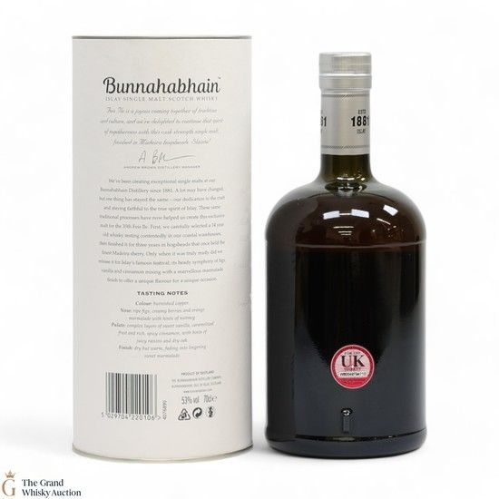 This limited edition single malt from Bunnahabhain Distillery was matured for 14 years in classic bourbon barrels, then finished in Madeira casks for another three years. Bottled at 53%, and released by Bunnahabhain for the 25th anniversary of Fèis Ìle - Fèis Ìle 2020. This is one of only 1164 bottles produced.