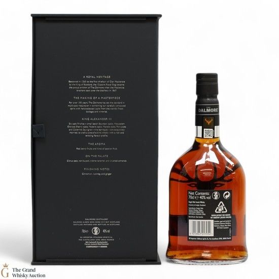 To make The Dalmore King Alexander III, Master Distiller Richard Paterson specially selected 6 casks of differently aged Dalmore malts matured in wine, Madeira, sherry, marsala, Kentucky bourbon and port casks. A remarkable feat of blending crafted to honour the act of saving Scotland's King in 1263. It is a rich, fruity Highland single malt.