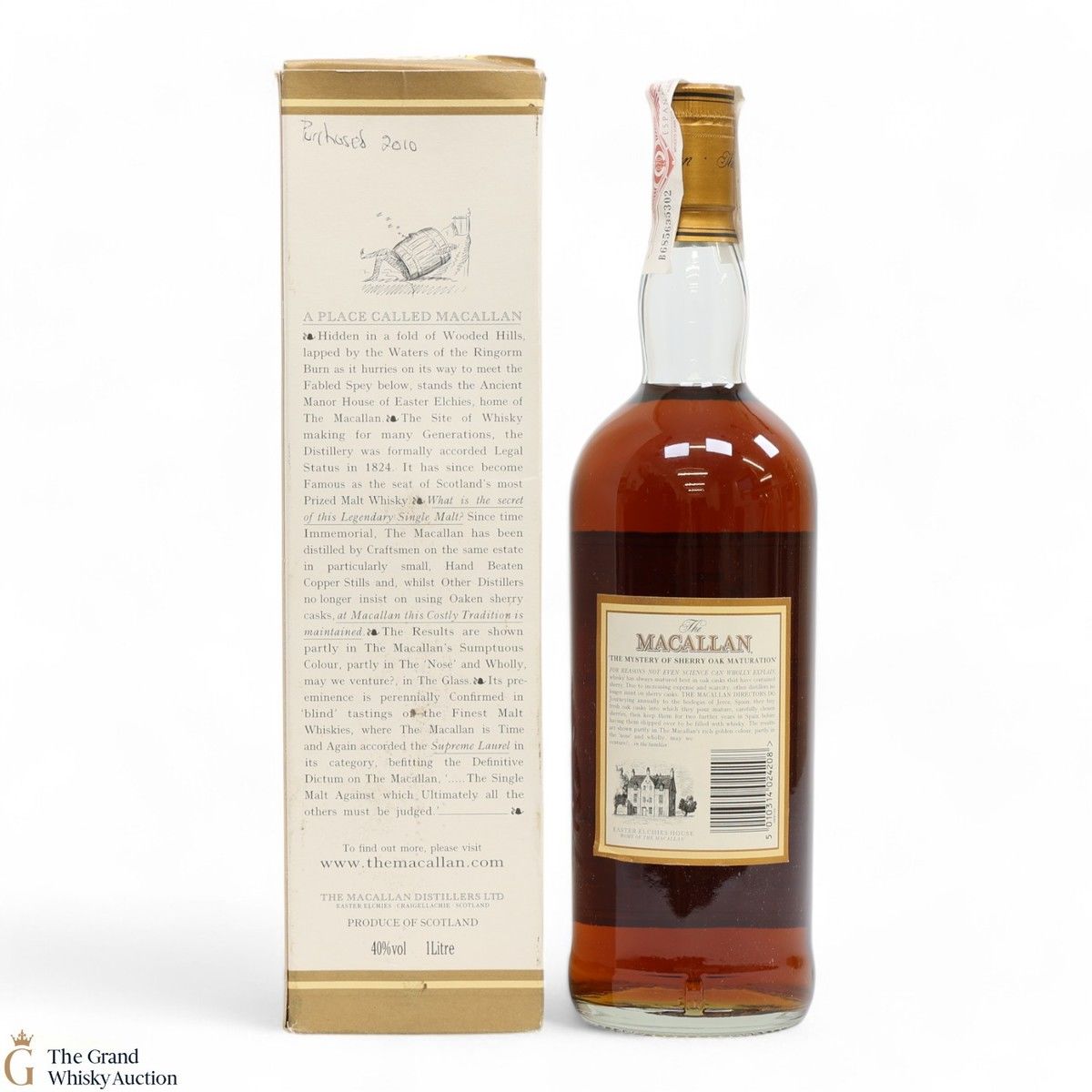 An old bottling of Macallan 10-year-old, which has been exclusively matured in sherry oak casks. Bottled in the early 2000's.