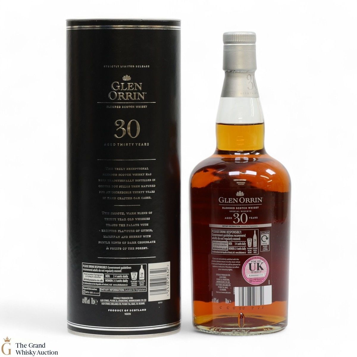 Bottled for Aldi, Glen Orrin 30-Year-Old - This blended malt has been matured in oak casks. It has a slightly sweet and rounded taste with rich fruit and a dry finish. 70cl, 40% ABV.