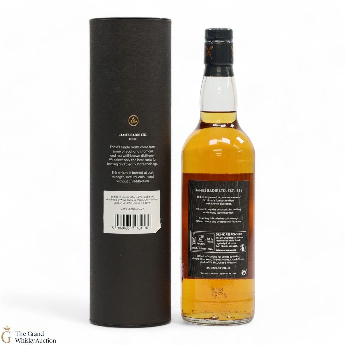 This Glen Spey single cask single malt was distilled in May 2009 and matured in a bourbon hogshead for twelve years. It was bottled in 2021 by James Eadie at a cask strength of 56.8% ABV. One of 286 bottles produced.