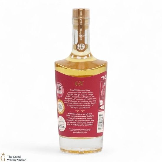 GoodWill Quercus Robur is a cask-mastered, limited-edition Scottish craft gin. Aged in a single 1st fill Oloroso Sherry Hogshead, the ‘European oak’ releases rich fruit flavours during maturation to complement the crisp aromas and full flavours created by the nine premium botanicals at the heart of GlenWyvis GoodWill Gin.
