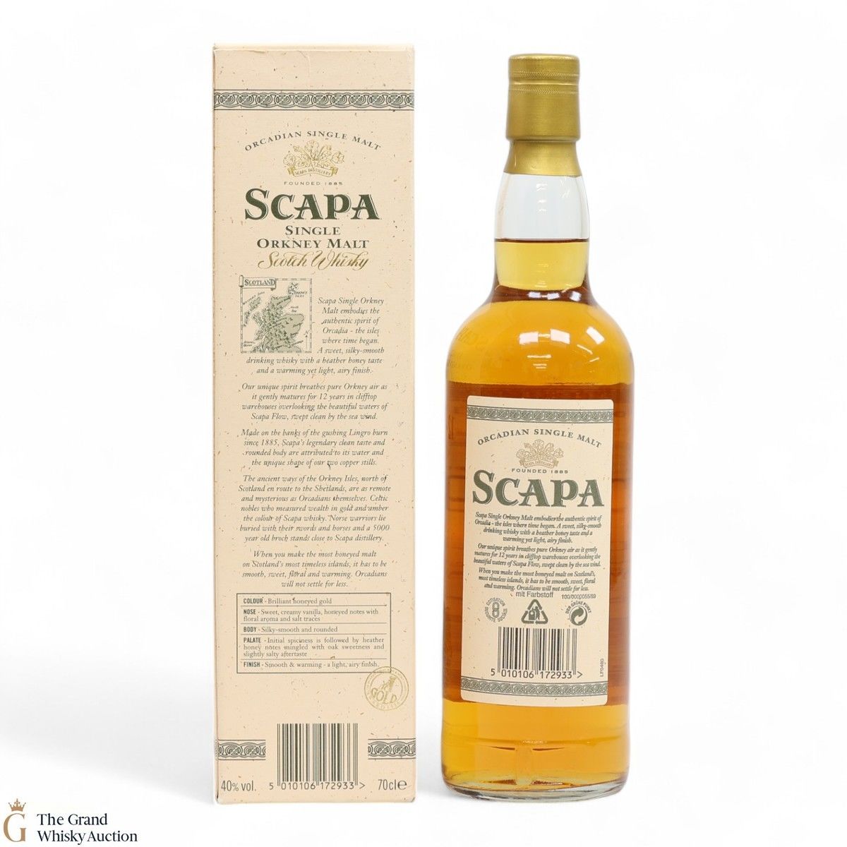 A long discontinued 12 Year Old from the Scapa Distillery in Orkney. It was matured for 12 years in clifftop warehouses overlooking the beautiful waters of the Scapa Flow.