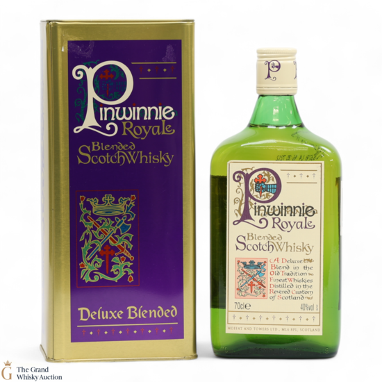 This is an eye-catching older-style bottling of Pinwinnie Royale Deluxe Blended Whisky. It is very elegantly packaged with an iconic presentation tin. It is estimated that this botting is from the 1980s - unfortunately, it is now discontinued.
