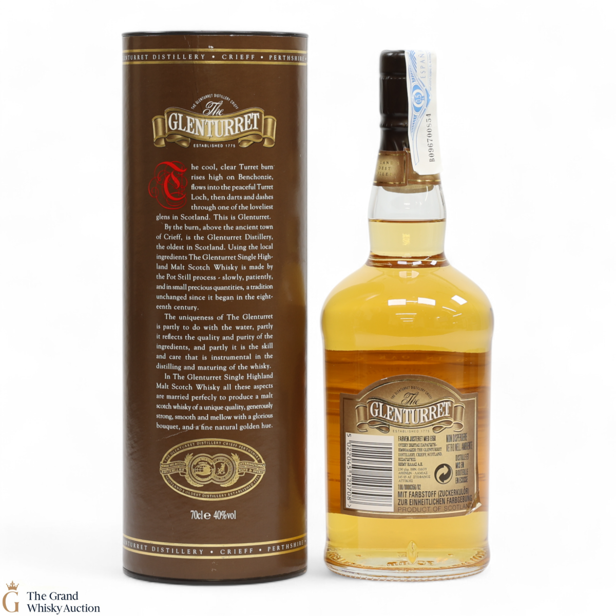 Due to the various ages of bottles and their seals, the condition of liquid is at the buyer's discretion and no claim can be lodged against failure/leakage in transit. Loss and breakage cover is available at 3% of the hammer price as standard. If the lot is not insured, no claim can be lodged against the courier or The Grand Whisky Auction for breakage or loss in transit.