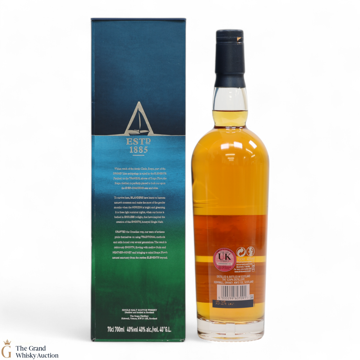 Skiren is known as the honeyed tropical one because of its smooth, creamy sweetness with a hint of tropical fruit, citrus and coastal heather. It was exclusively matured in 100% first-fill American Oak Casks, selected by Scapa artisans. This is batch 1 which was introduced into their range in 2015. It is made up of whisky produced on the industry's only remaining Lomond Still.