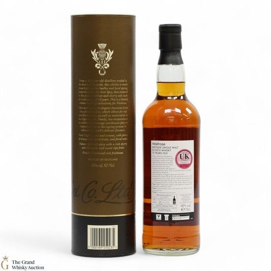 This Speyside Single Malt is from an undisclosed distillery located in Speyside. It has been aged for 10 years and matured in bourbon and sherry casks. This is a limited edition bottling exclusively for Waitrose.
