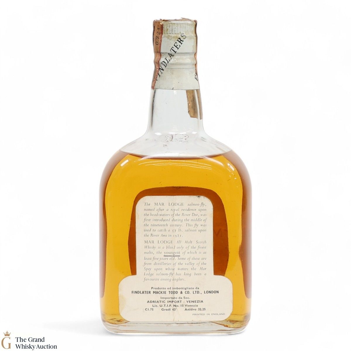 Mar Lodge was matured for over 5 years, produced by Findlater Mackie Todd & Co. This is a 75cl bottle.