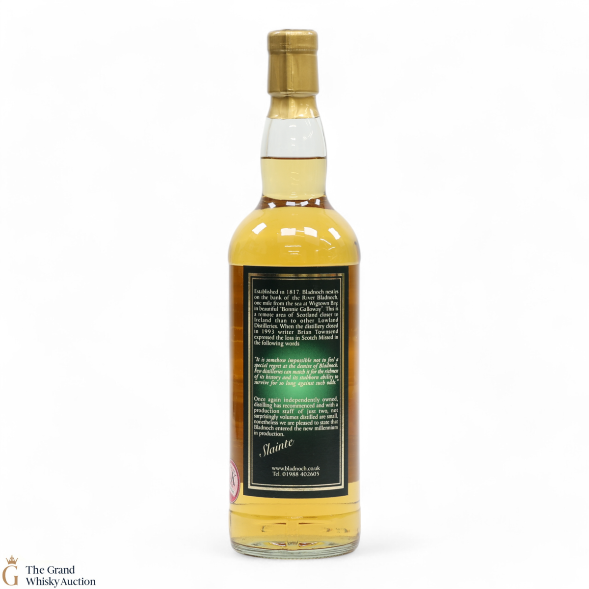 This is an older style 8 Year Old Bladnoch 70cl bottling. This edition features the Belted Galloway cow which is native to the area.