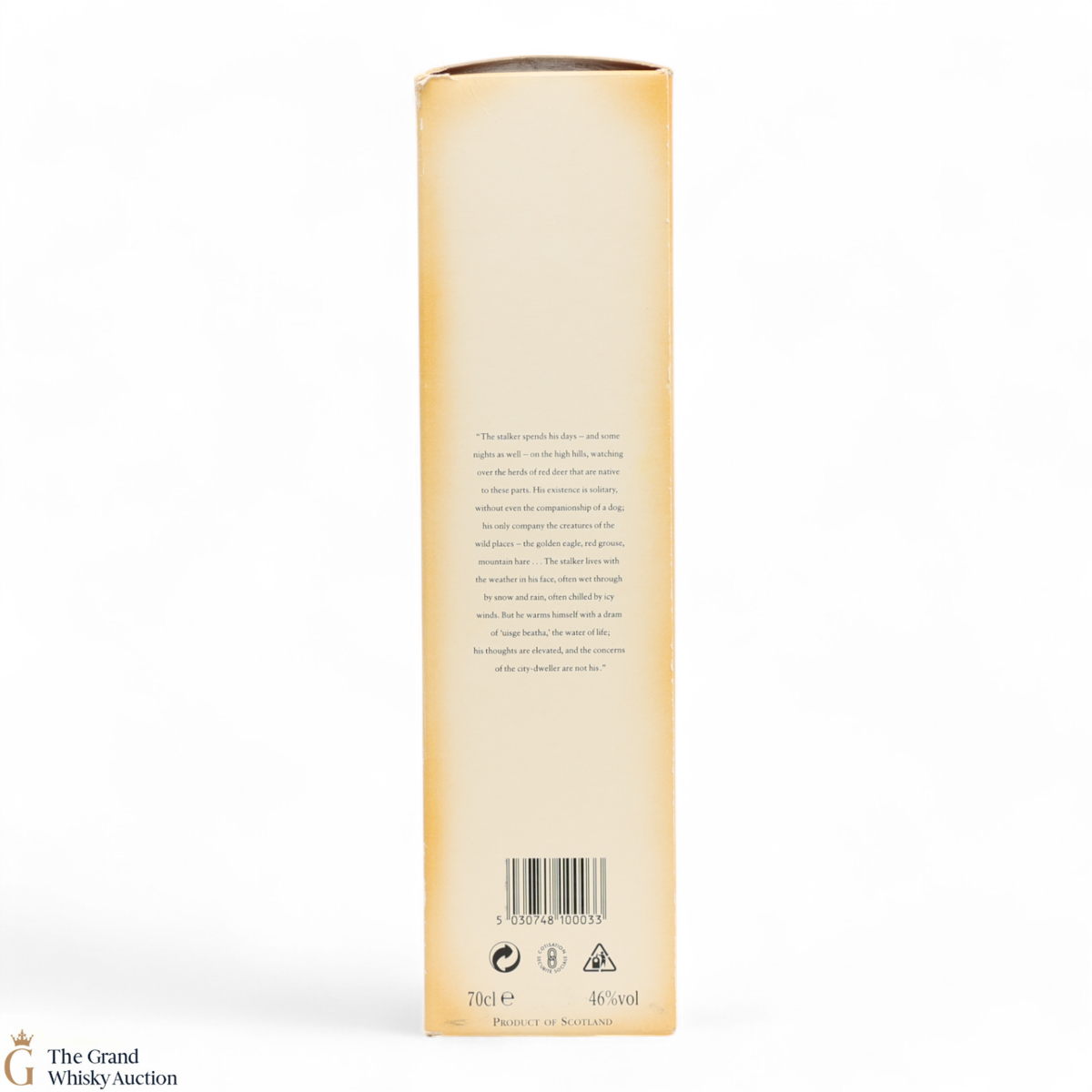 Due to the various ages of bottles and their seals, the condition of liquid is at the buyer's discretion and no claim can be lodged against failure/leakage in transit. Loss and breakage cover is available at 3% of the hammer price as standard. If the lot is not insured, no claim can be lodged against the courier or The Grand Whisky Auction for breakage or loss in transit.