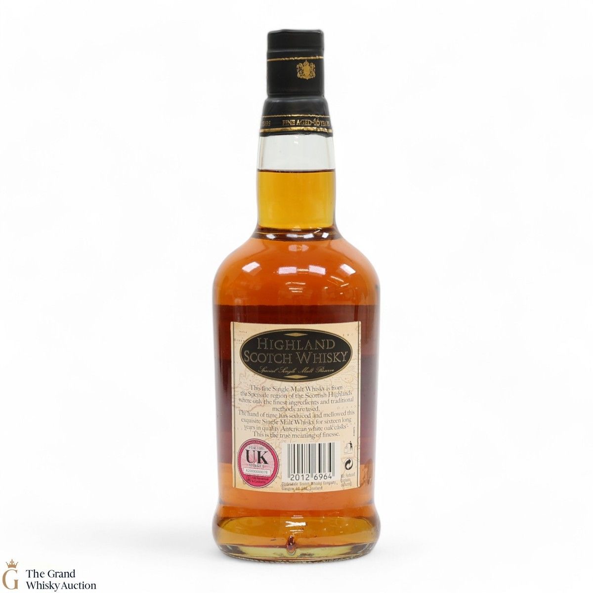 Due to the various ages of bottles and their seals, the condition of liquid is at the buyer's discretion and no claim can be lodged against failure/leakage in transit. Loss and breakage cover is available at 3% of the hammer price as standard. If the lot is not insured, no claim can be lodged against the courier or The Grand Whisky Auction for breakage or loss in transit.