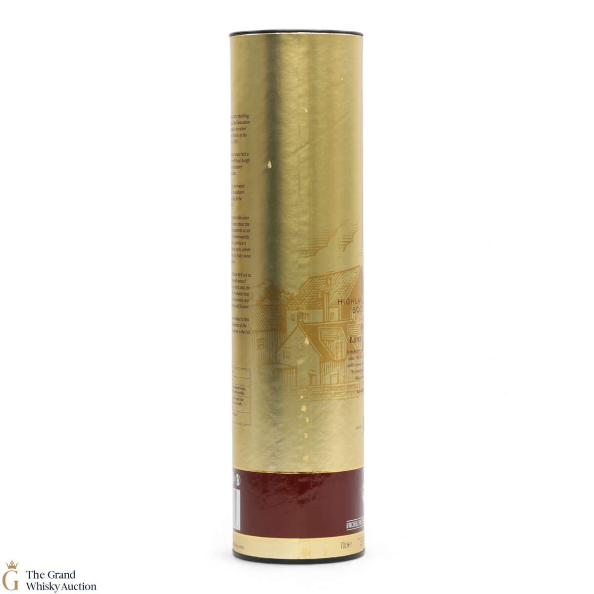 Due to the various ages of bottles and their seals, the condition of liquid is at the buyer's discretion and no claim can be lodged against failure/leakage in transit. Loss and breakage cover is available at 3% of the hammer price as standard. If the lot is not insured, no claim can be lodged against the courier or The Grand Whisky Auction for breakage or loss in transit.