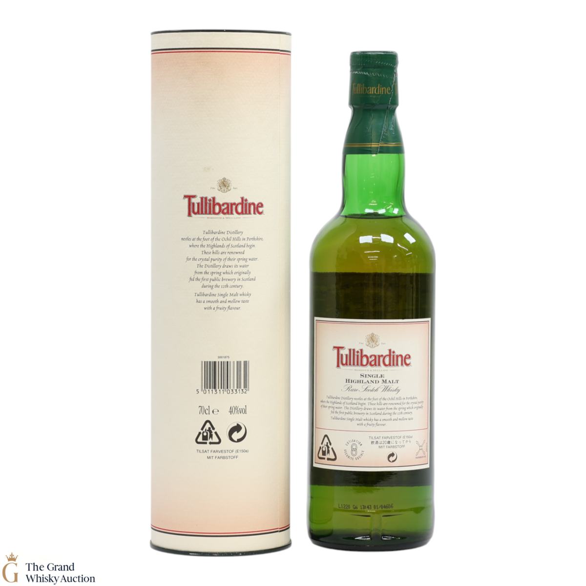 Due to the various ages of bottles and their seals, the condition of liquid is at the buyer's discretion and no claim can be lodged against failure/leakage in transit. Loss and breakage cover is available at 3% of the hammer price as standard. If the lot is not insured, no claim can be lodged against the courier or The Grand Whisky Auction for breakage or loss in transit.