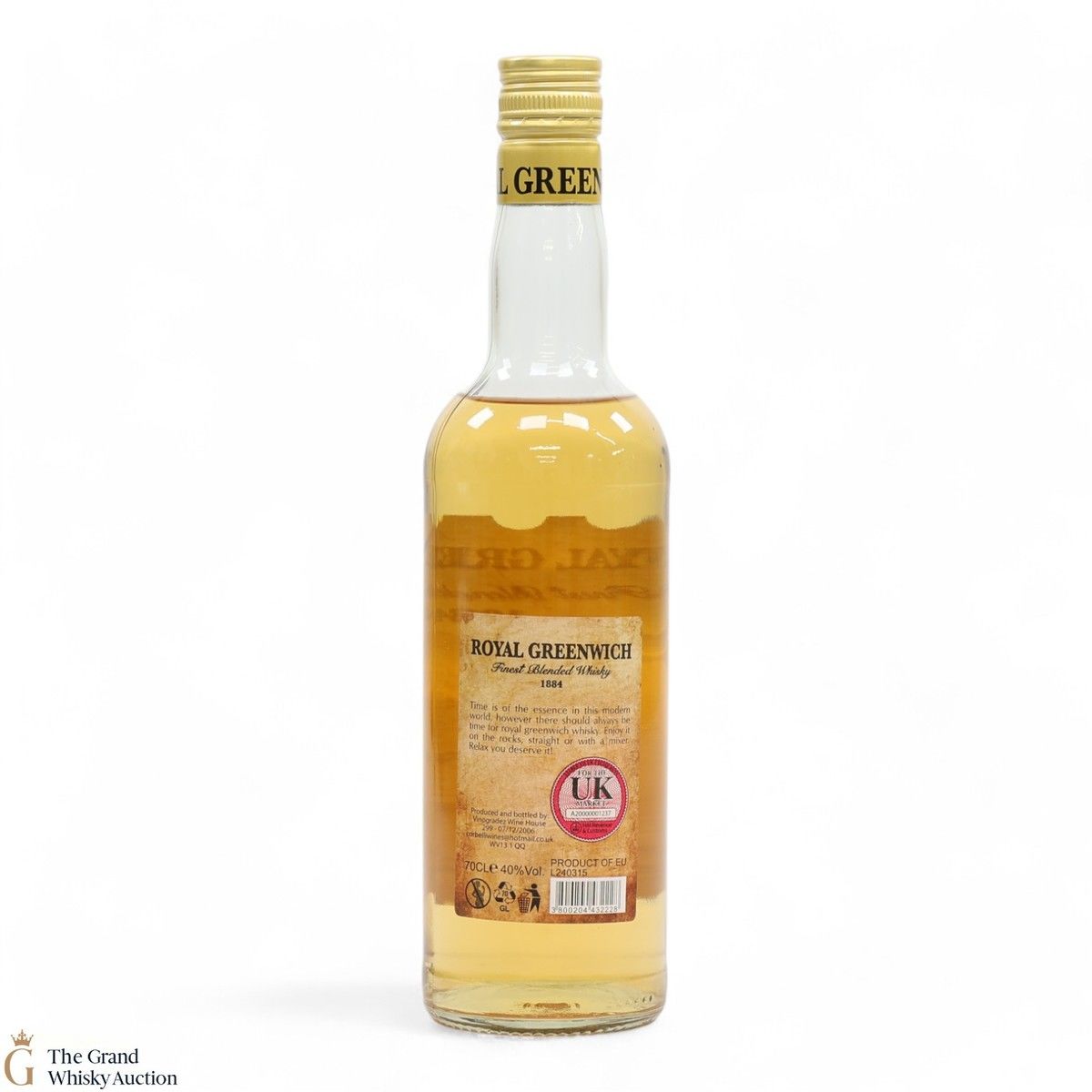 Royal Greenwich has undergone a meticulous aging process of 3 years in oak barrels, expertly blended by skilled craftsmen.