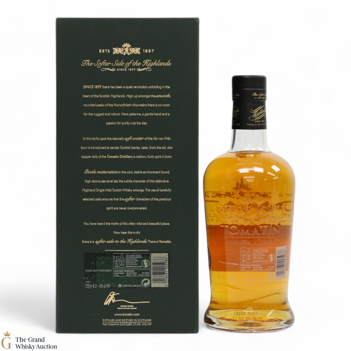 Tomatin Distillery was founded in 1897 by the Tomatin Spey Distillery Company, located in the Highlands between Aviemore and Inverness. Going through various fluctuations in production whilst growing from 2 stills to 23 stills throughout the 60s and 70s before going into liquidation. In 1985 the Distillery was purchased by long-term Japanese customers, Takara Shuzo Co. and Okara & Co. thus becoming the first Scottish distillery to be under Japanese management. Later the prestigious Antiquary blender J&W Hardie was added to the portfolio, and Marubeni bought the distillery. In more recent years production has been downsized to utilise just 10 stills and the decision was made to focus on the single malt range, such as the ‘Cu Bocan’ expression released in 2013.