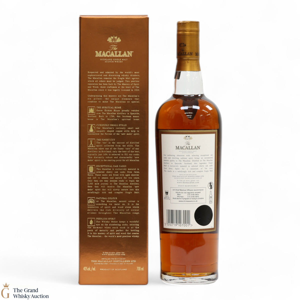 Distilled at the world-renowned Macallan Distillery in Speyside, this single malt was matured exclusively in sherry oak casks from Jerez, Spain. It was aged for a total of 10 years prior to bottling at a strength of 40% ABV.