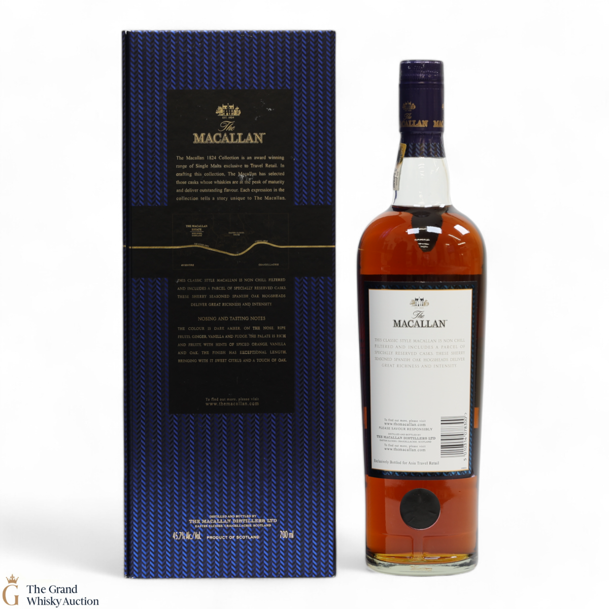 The Macallan 1824 Collection is a travel exclusive collection, available in select airports around the world. This collection is defined by the selection of casks whose whiskies are at the peak of maturity. Each expression showcases the distinct depth of quality of The Macallan.