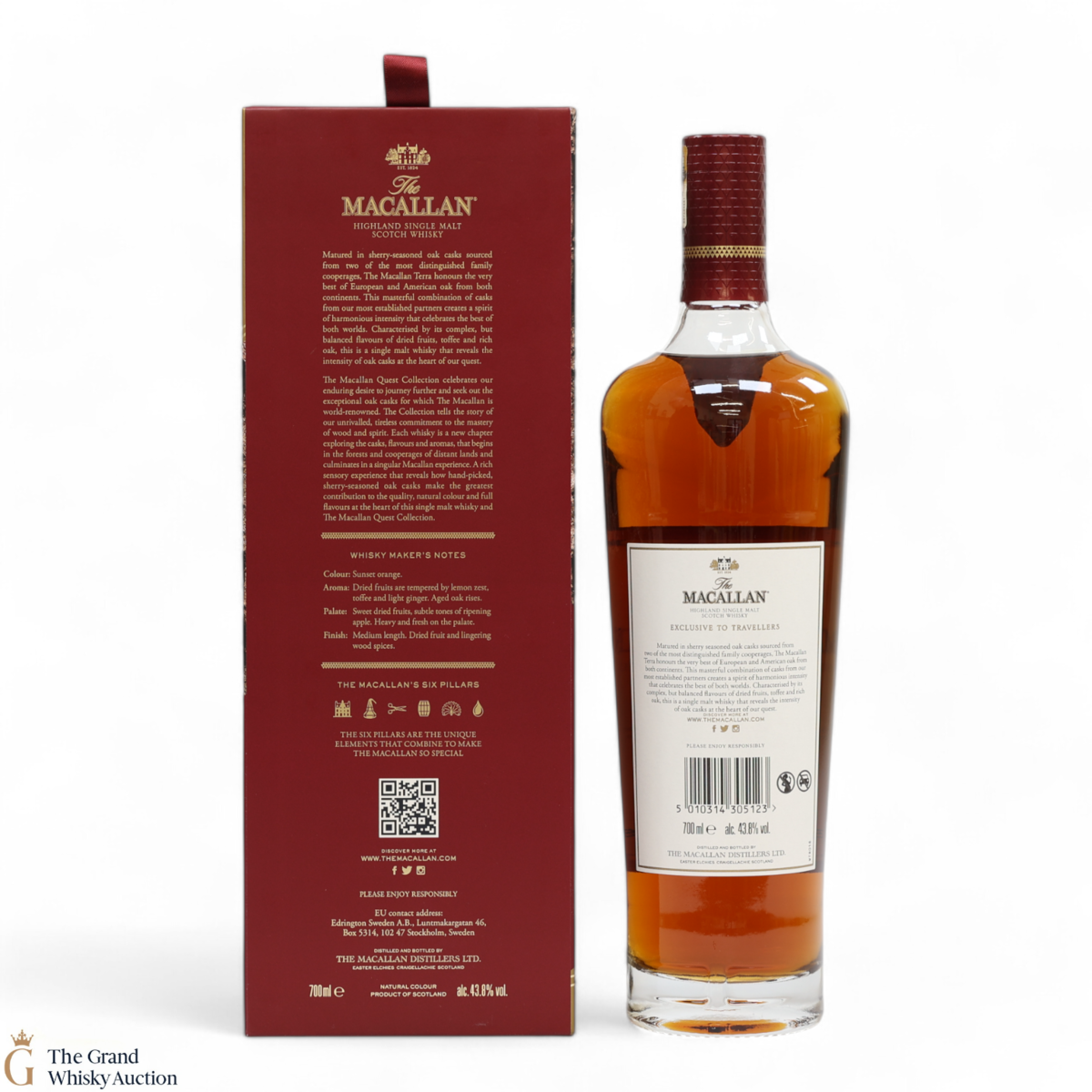 The Macallan Quest Collection is a reflection of their quest to discover the best casks, flavours and aromas, their journey took them across various continents, cultures and terrains. Each expression explores new casks, flavours and aromas of The Macallan. This quartet of whiskies was created exclusively for travel retail.