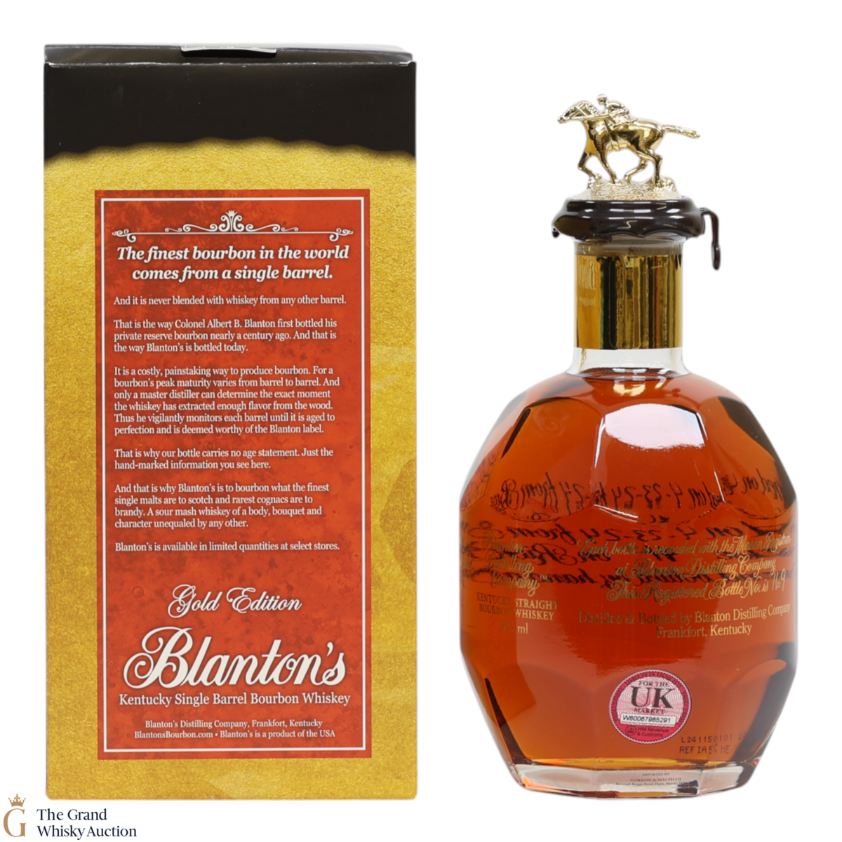 PLEASE NOTE: The wax seal on Blanton's bottles are prone to cracking in transit due to their design. Therefore, as stated in our T&C’s, we do not and will not accept liability should the seal be breached, broken, split or leak in transit. Additionally, please know due to the design of the internal cardboard packaging that surrounds the top of the bottles, it too may be torn. By bidding on this lot you have understood this to be true. Insurance is for complete breakage or loss in transit only.