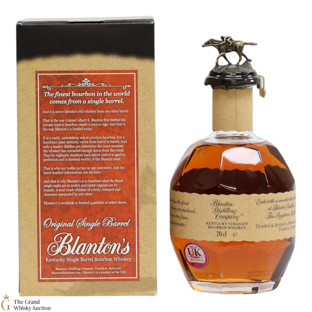 PLEASE NOTE: The wax seal on Blanton's bottles are prone to cracking in transit due to their design. Therefore, as stated in our T&C’s, we do not and will not accept liability should the seal be breached, broken, split or leak in transit. Additionally, please know due to the design of the internal cardboard packaging that surrounds the top of the bottles, it too may be torn. By bidding on this lot you have understood this to be true. Insurance is for complete breakage or loss in transit only.