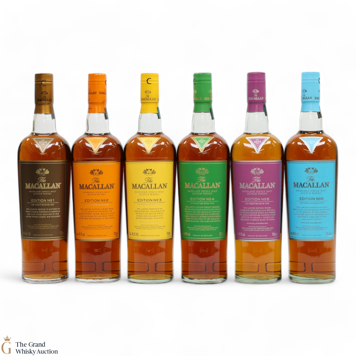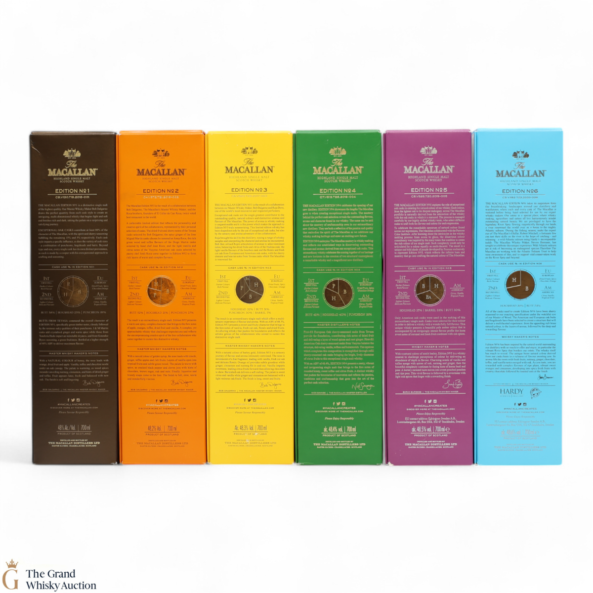This lot brings together the Macallan Edition set, comprising Edition No.1-6 in the annual limited edition series 2015-2020.