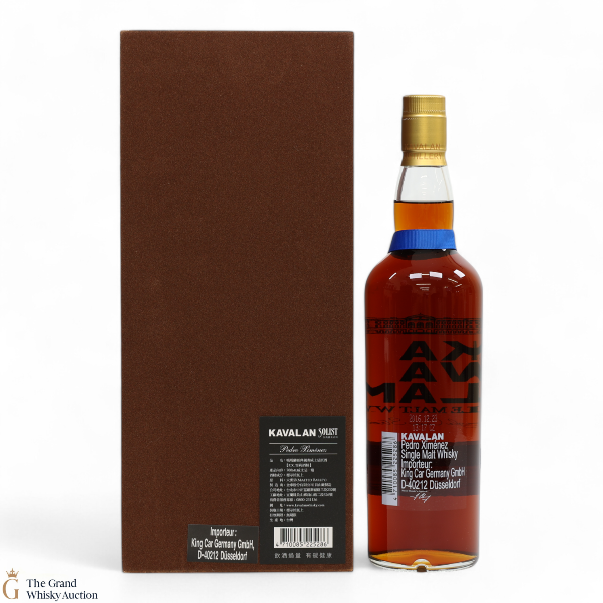 This lot is a Single cask #PX110321027A Cask Strength Kavalan that has been matured in a single PX Sherry cask.