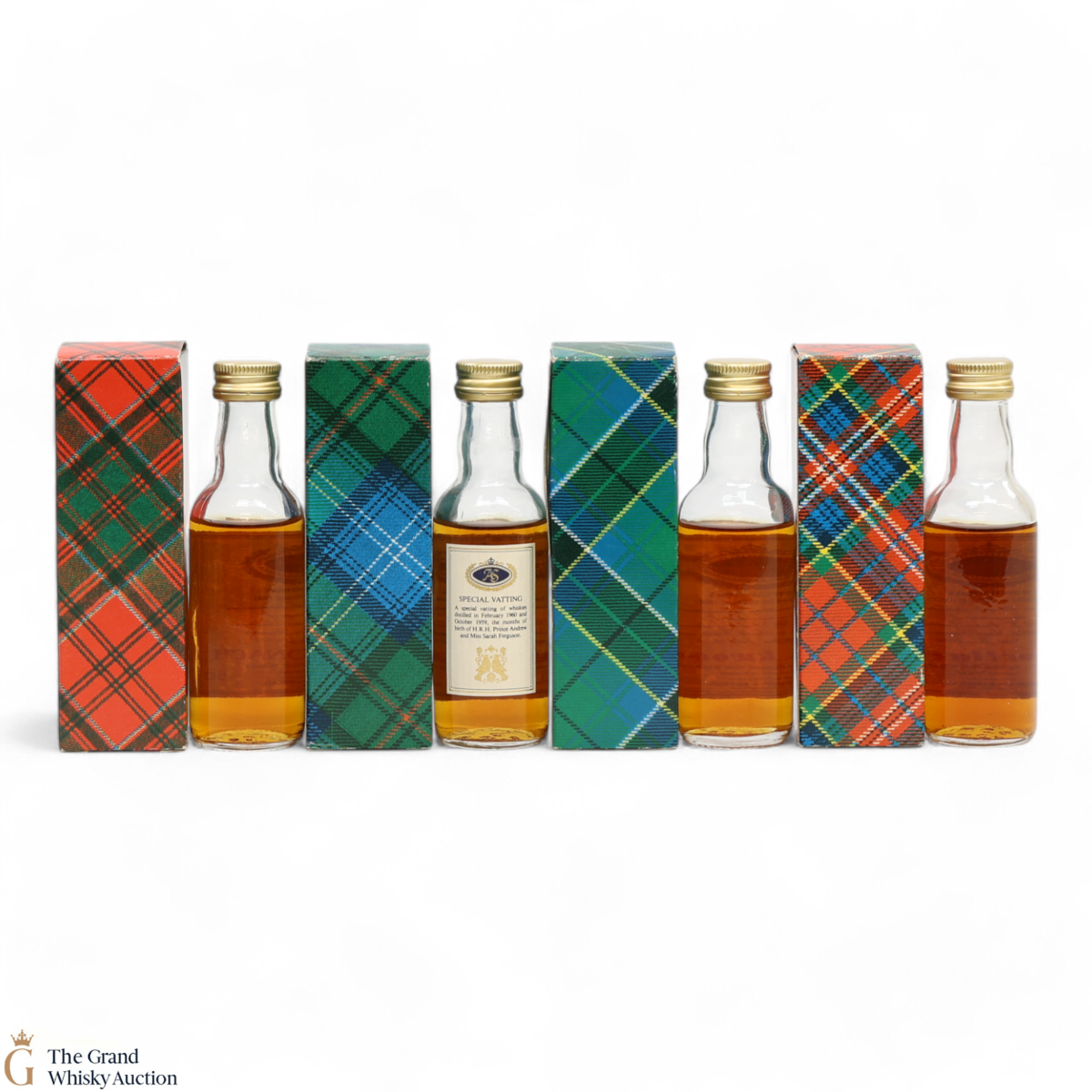 This lot contains the following 5cl bottlings distilled in 1959 and 1960. Bottled especially in 1986 at 40% ABV to commemorate the marriage of H.R.H Prince Andrew and Miss Sarah Ferguson.