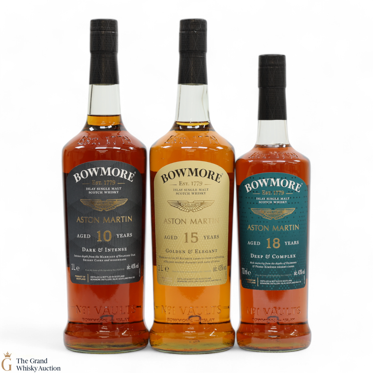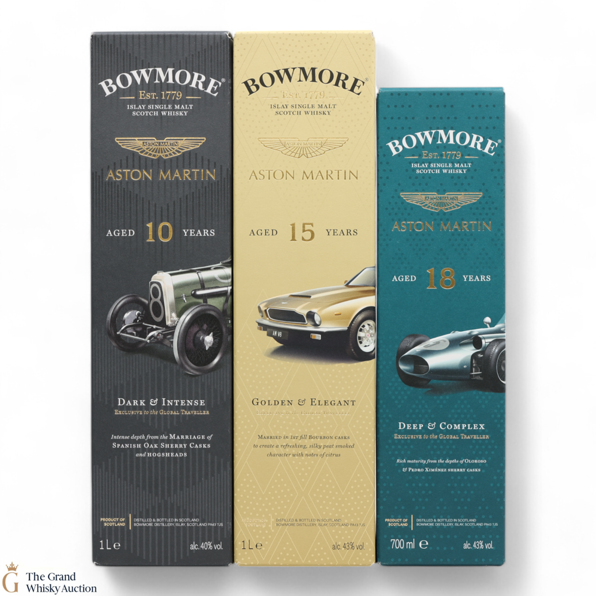 This lot includes 3 x Travel retail exclusive bottles; Edition 4, 5 & 6 from the limited BOWMORE X ASTON MARTIN collection; 2 x 1L bottles and 1 x 70cl.
