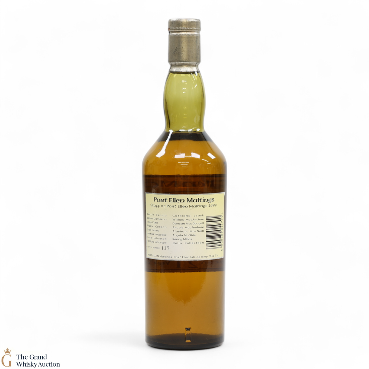 A rare and stunning Port Ellen, bottled in 1998 to commemorate the 25th Anniversary of Port Ellen Maltings. The rear label was printed with the names of the distillery staff, in 1998.