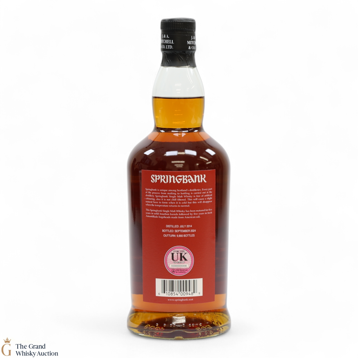 This Springbank Single Malt Whisky was distilled in July 2014 and has been matured for five years in refill bourbon barrels followed by four years in fresh amontillado hogsheads made from American oak. It was then bottled in September 2024 at a strength of 55% ABV with an outturn of 9,900 bottles.
