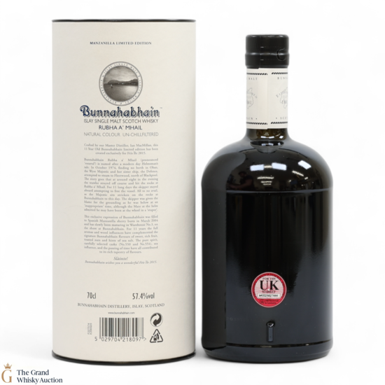 Bunnahabhain Rubha A’ Mhail is a 11-year-old Bunnahabhain which was bottled for the 2015 Fèis Ìle. Aged in two Spanish Manzanilla sherry butts (#550 & #554) this is a limited edition of 1,200 individually numbered bottles.
