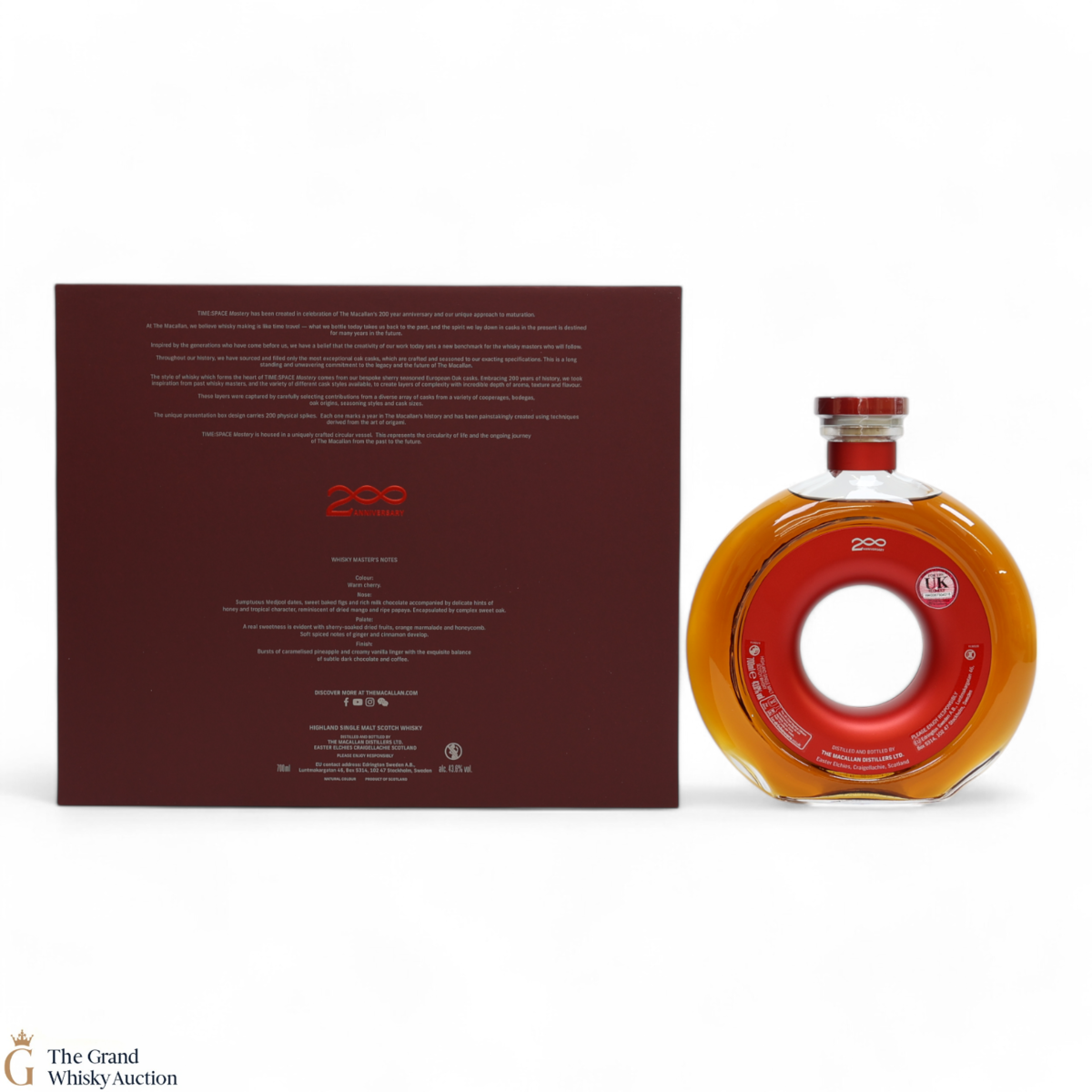 This whisky is contained in a unique circular vessel symbolising the circle of life and the ongoing journey from the past to the future. It was matured in one of Macallan's bespoke sherry-seasoned European oak casks until bottled at a strength of 43.6% ABV.