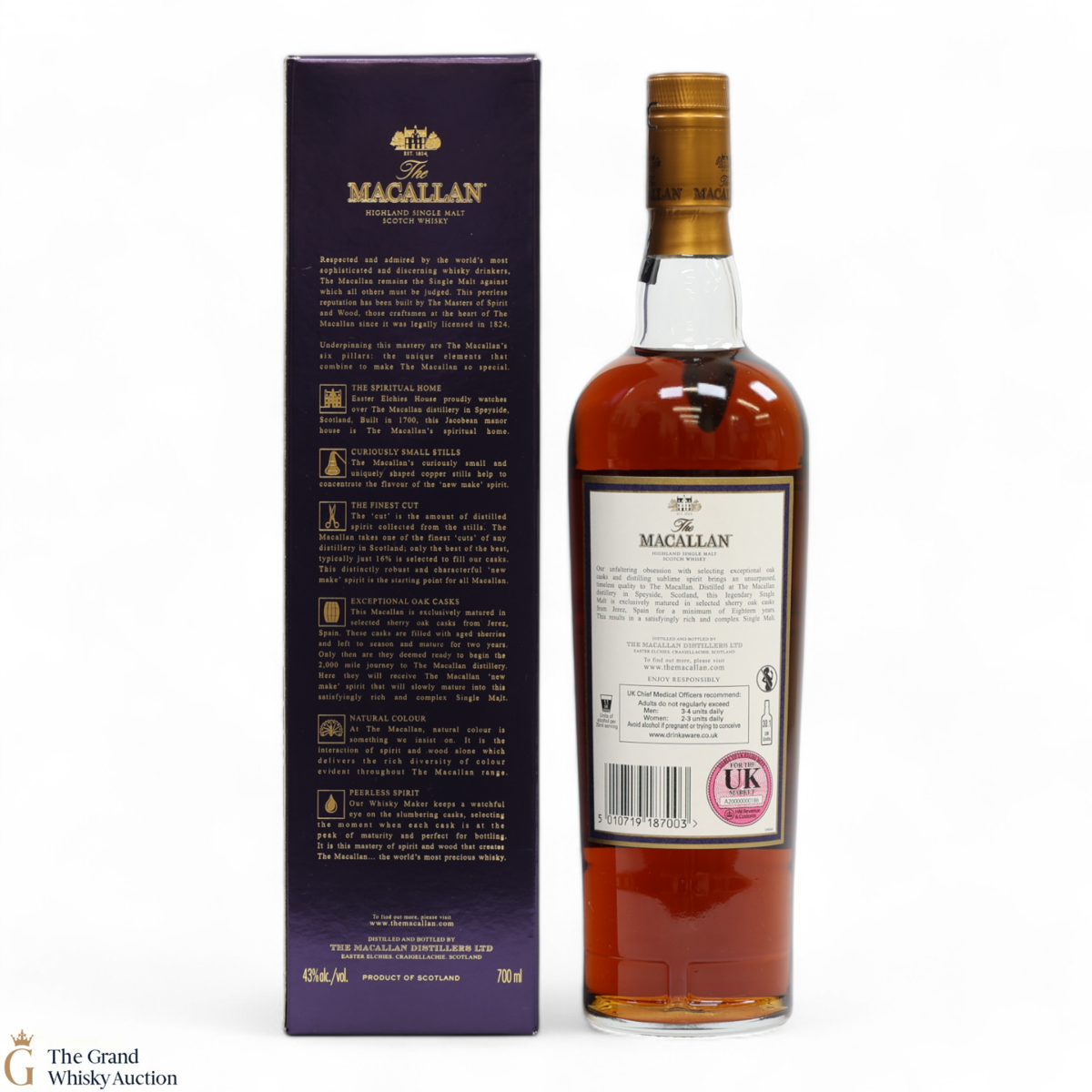 Due to the various ages of bottles and their seals, the condition of liquid is at the buyer's discretion and no claim can be lodged against failure/leakage in transit. Loss and breakage cover is available at 3% of the hammer price as standard. If the lot is not insured, no claim can be lodged against the courier or The Grand Whisky Auction for breakage or loss in transit.