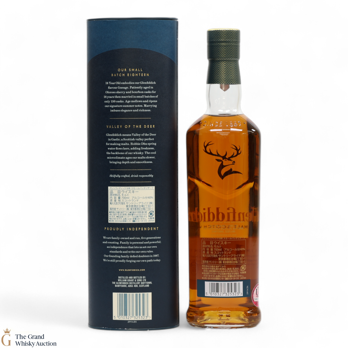 Matured in small batches the Glenfiddich 18 is arguably the most complex in the core range. The single malt has been matured in oloroso sherry and bourbon casks. It is very fragrant with tropical fruit and sherry cask influences, rich baked apple and cinnamon spice compliments by robust oak notes.