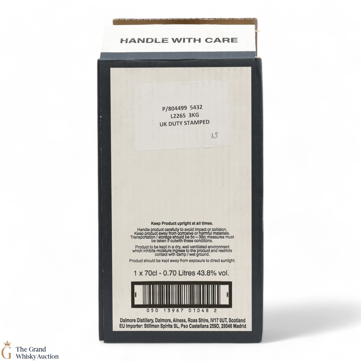 Due to the various ages of bottles and their seals, the condition of liquid is at the buyer's discretion and no claim can be lodged against failure/leakage in transit. Loss and breakage cover is available at 3% of the hammer price as standard. If the lot is not insured, no claim can be lodged against the courier or The Grand Whisky Auction for breakage or loss in transit.