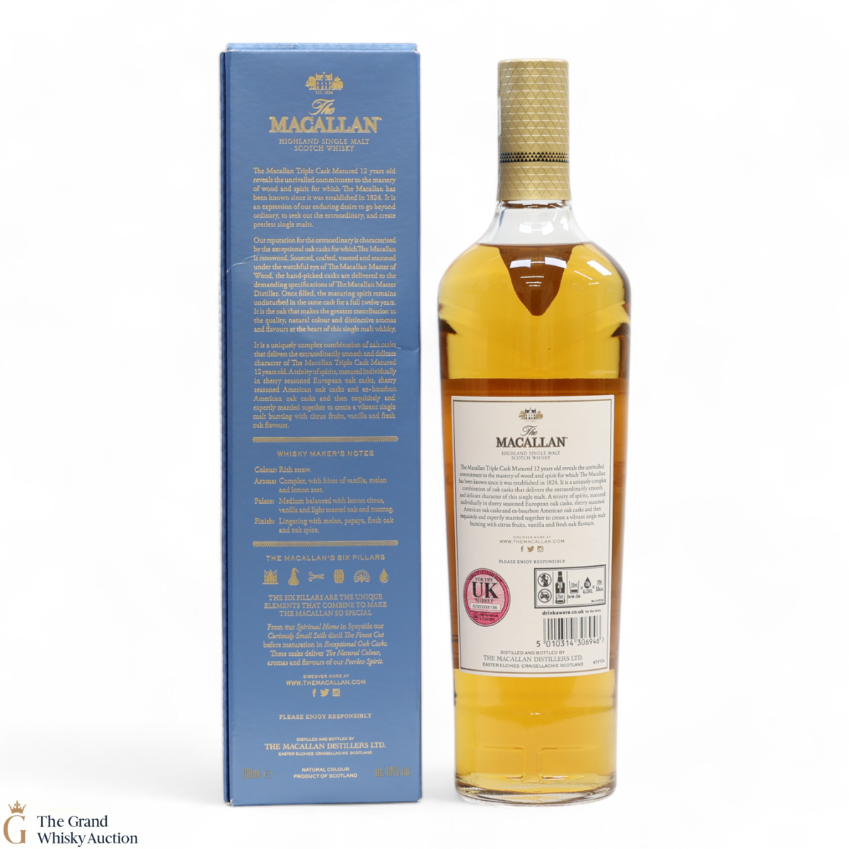The 12 year old single malt was matured for 12 years and drawn from a combination of European sherry seasoned casks, American sherry seasoned casks and American ex-bourbon casks. It is part of Macallan's Triple Cask range which was launched in 2018, taking the place of the Fine Oak range.