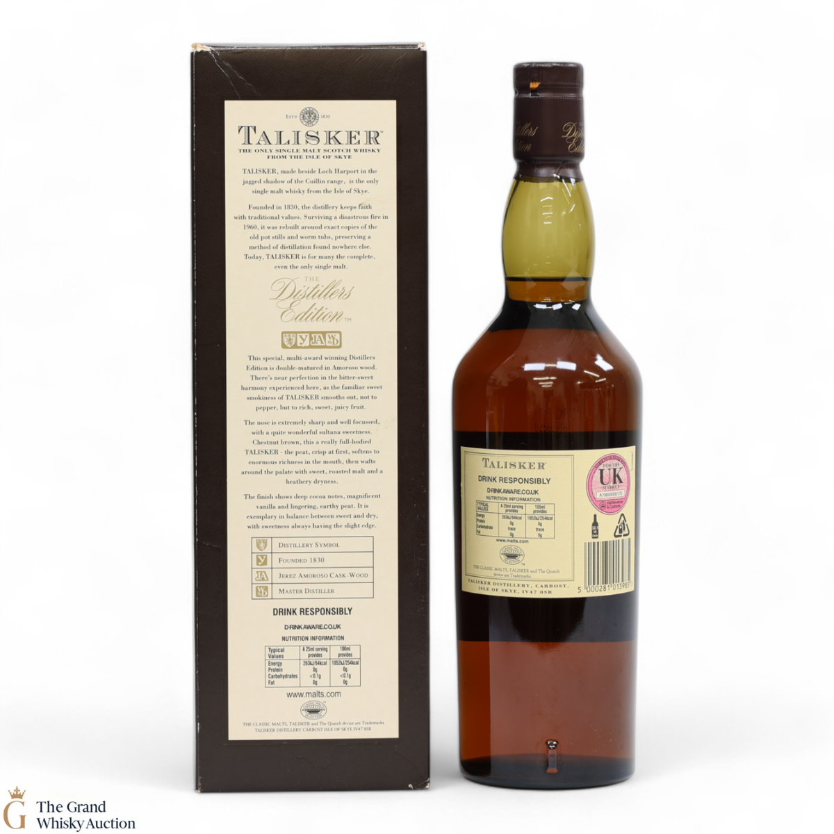 The Distillers Edition is a special release from Talisker, the single malt was double matured with a finishing period in a sweet amoroso cask-wood.