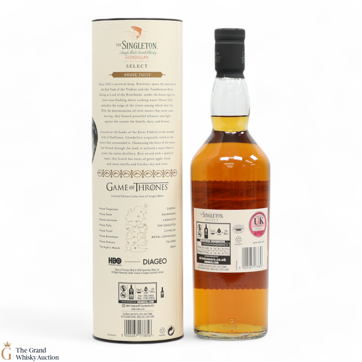 The Singleton Glendullan Reserve hails from Dufftown distillery. Glendullan is located on the banks of the River Fiddich, so it has been cleverly paired with House Tully at Riverrun, which is in the region known as The Riverlands. This single malt Scotch whisky is decorated with a jumping trout - the sigil of House Tully.