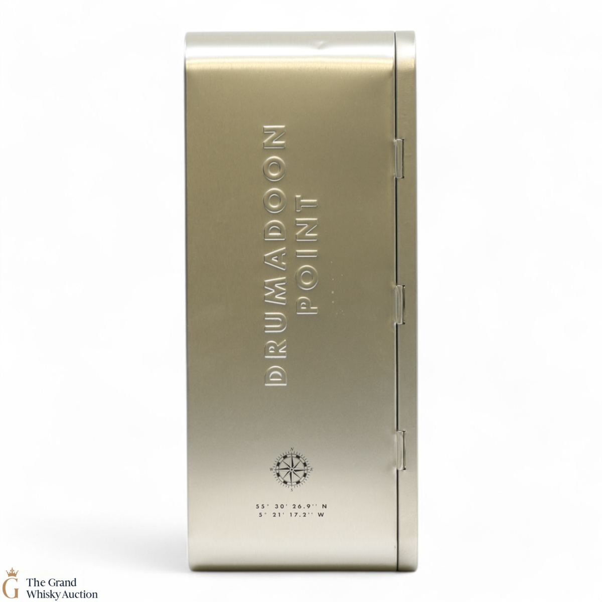 The presentation tin and the bottle label features beautiful views of Drumadoon point.