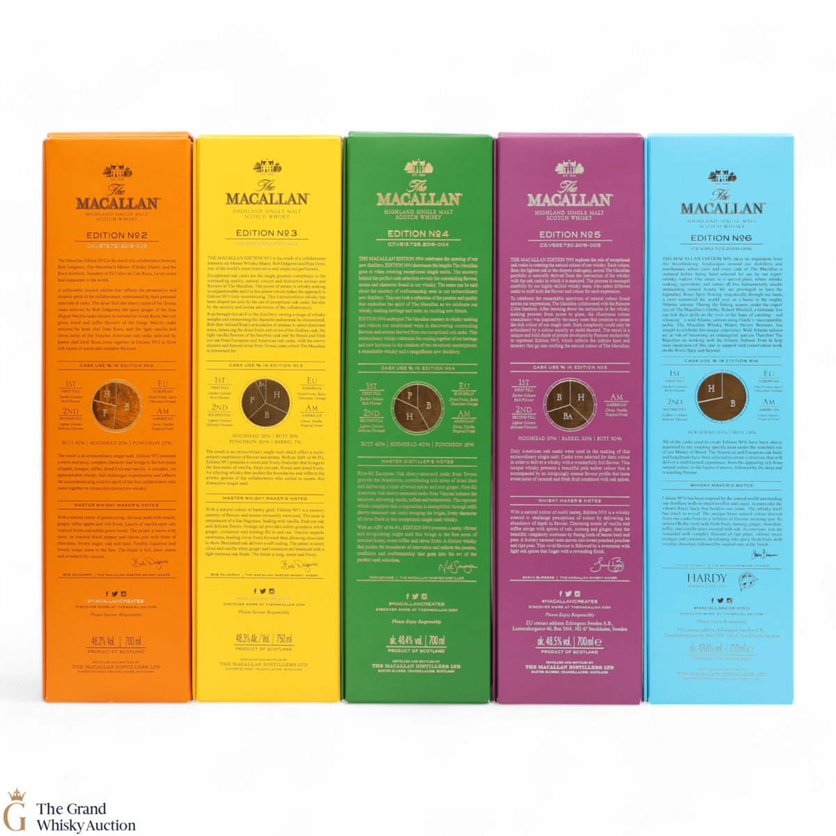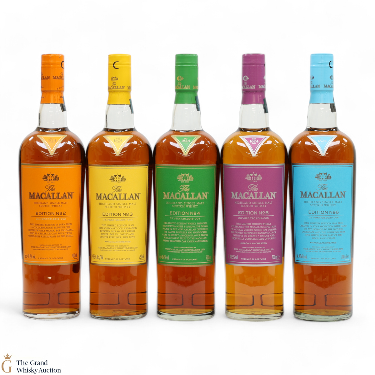 This lot brings together the Macallan Edition set, comprising Edition No.2-6 in the annual limited edition series 2016-2020.