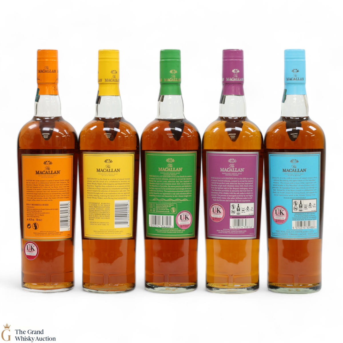 - Macallan - Edition No.5 - 48.5% (70cl) - The fifth release in the Edition Series from The Macallan, The Macallan Edition No. 5 celebrates The Macallan’s extensive natural colour spectrum and the intricate whisky-making process, in partnership with masters at the Pantone Color Institute™ to create a unique shade of purple that features on the packaging.