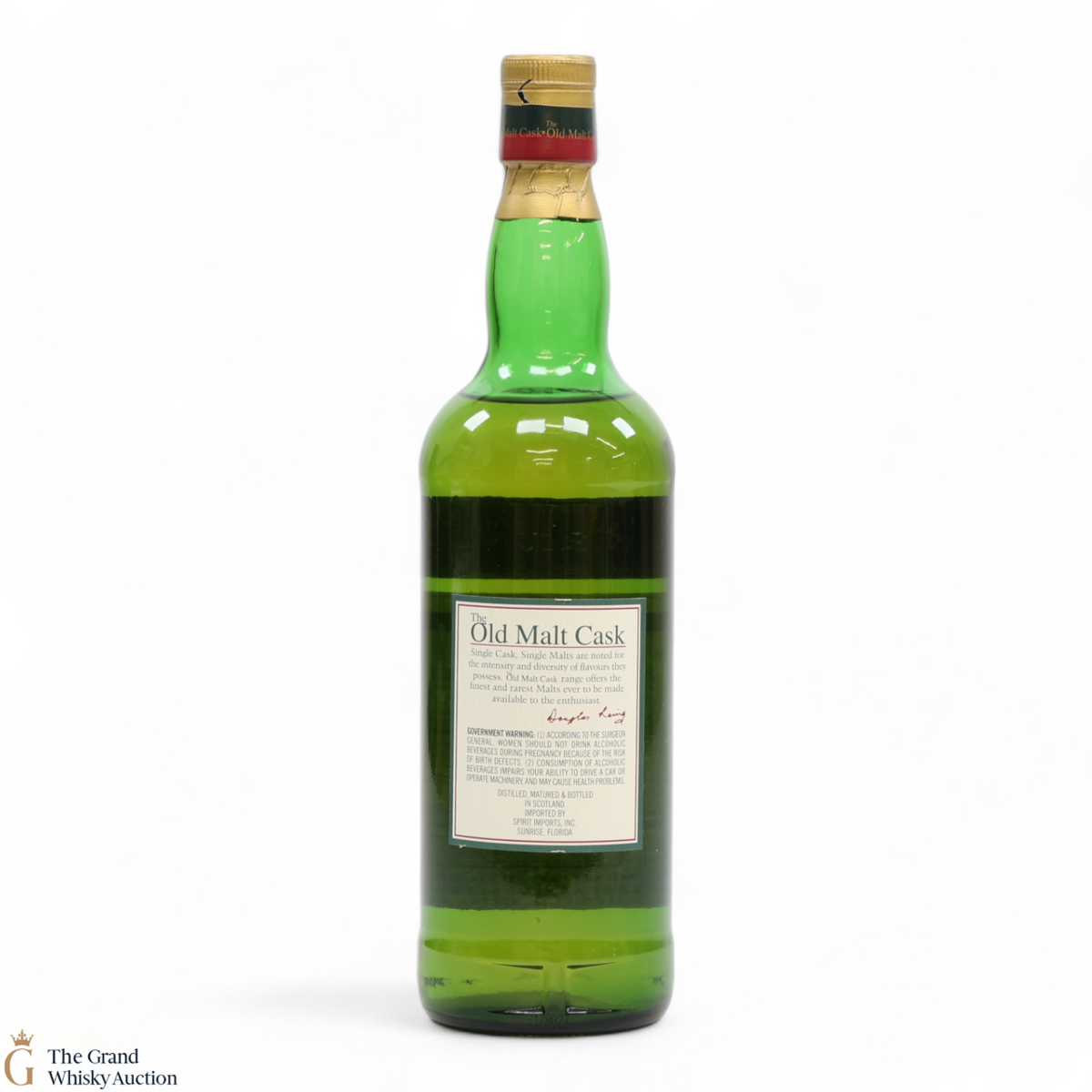 Due to the various ages of bottles and their seals, the condition of liquid is at the buyer's discretion and no claim can be lodged against failure/leakage in transit. Loss and breakage cover is available at 3% of the hammer price as standard. If the lot is not insured, no claim can be lodged against the courier or The Grand Whisky Auction for breakage or loss in transit.