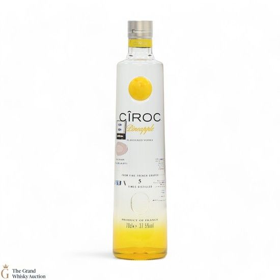 Cîroc Pineapple Ultra-Premium Flavoured Vodka is made with vodka distilled five times from fine French grapes and finished in a tailor-made copper pot still in Southern France. Cîroc Pineapple is masterly infused with a distinctive blend of pineapple and other natural flavours.