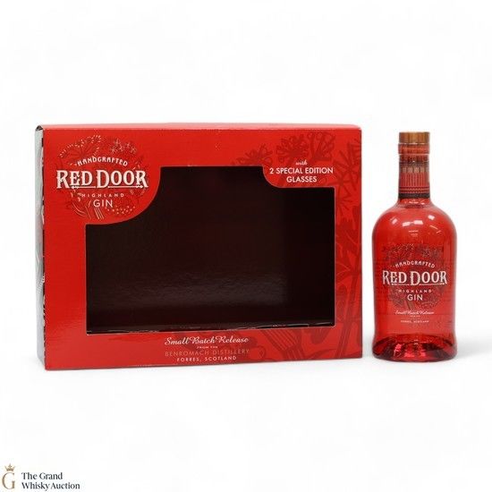 The Red Door Highland Gin Gift Collection is a beautifully curated seasonal offering that features a bottle of their premium Highland gin along with two branded glasses. The packaging is designed to reflect the seasonal theme, making it an attractive gift for gin enthusiasts.