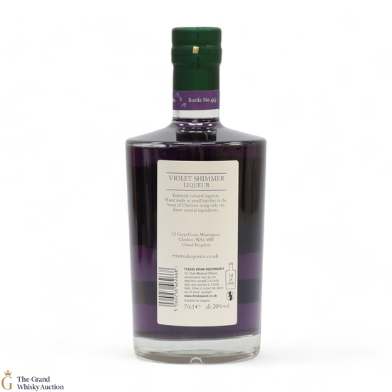 Riverside Spirits Violet Shimmer Gin Liqueur is a captivating blend that enchants the senses with its delicate floral notes and vibrant purple hue.