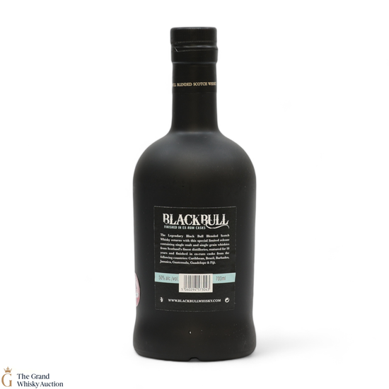 The name Blackbull reflects the brand's rich heritage and its emphasis on blending malt and grain whiskies complemented by a 10-year aging statement and rum cask finishing, representing a contemporary approach to traditional Scotch whisky blending techniques.