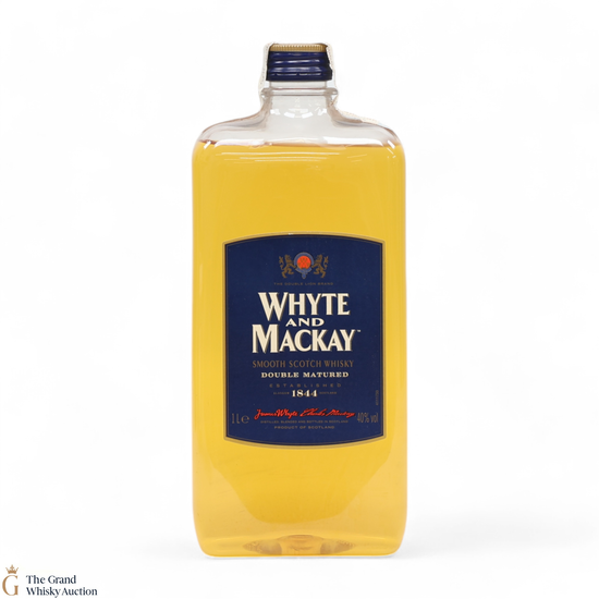 This is a plastic 1-litre bottle of Whyte and Mackay.