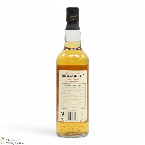 This 8 Year Old Highland single malt ' As We Get It ' was bottled at cask strength by Ian Macleod Co Ltd at 60.8% ABV (106 proof).