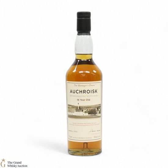 This 16-year-old single malt from the Auchroisk Distillery is part of The Manager's Dram series exclusively for Diageo employees (formerly United Distillers). It was bottled in November 2015 at 55.6%.